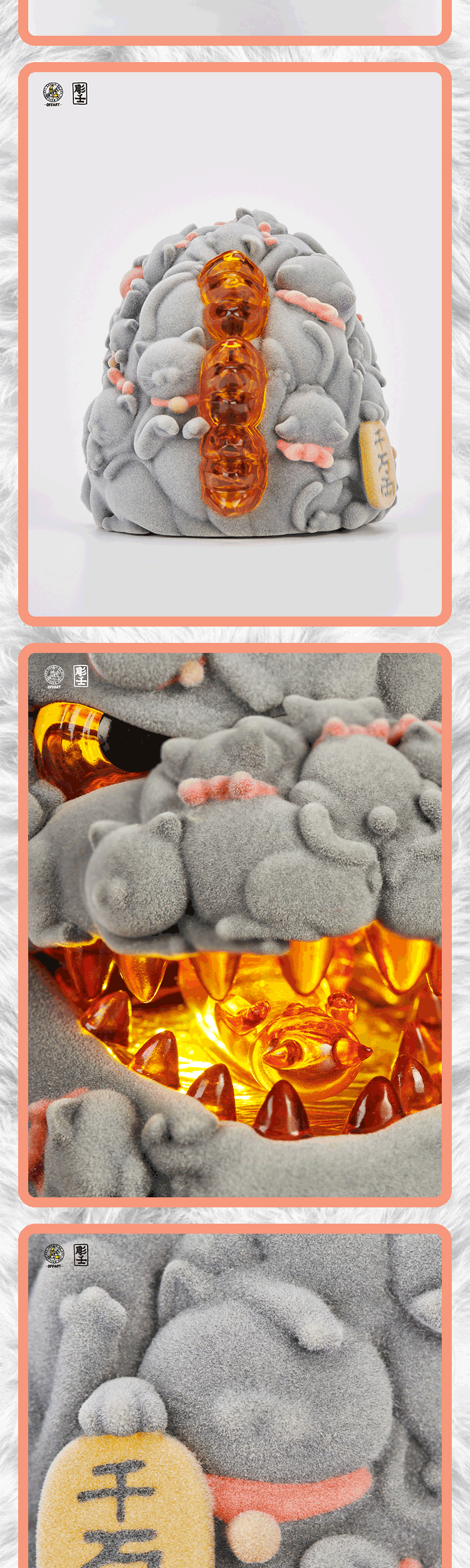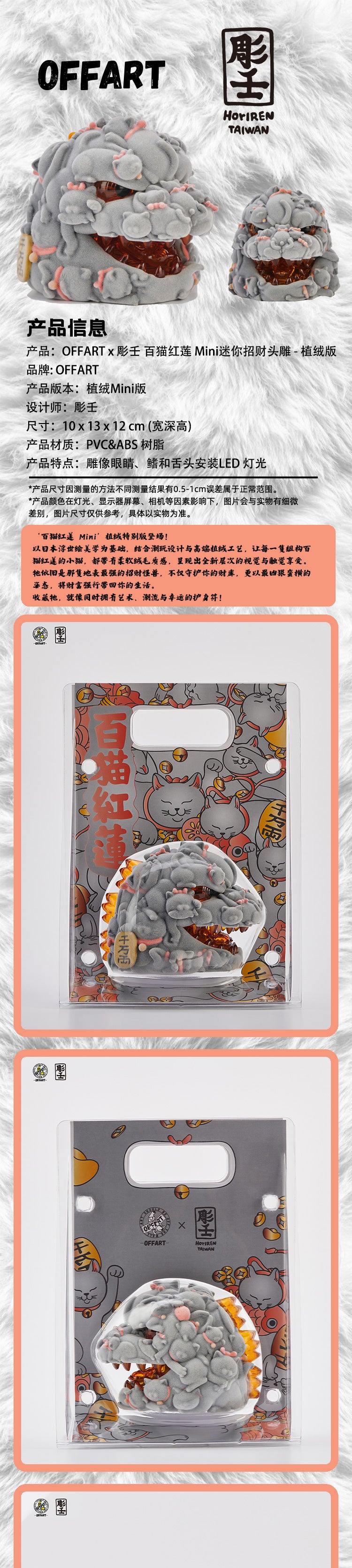 Product: OFFART X Horiren Red Flame Hundred Cats Mini Fortune Head Statue -Flocked version