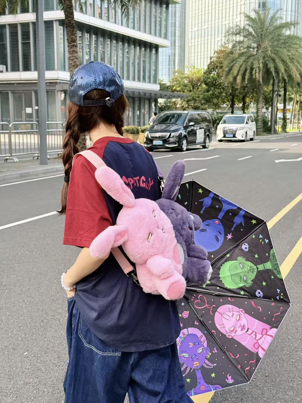 Product: Slacker Bunny & Angry Bunny Plush Toy Backpack